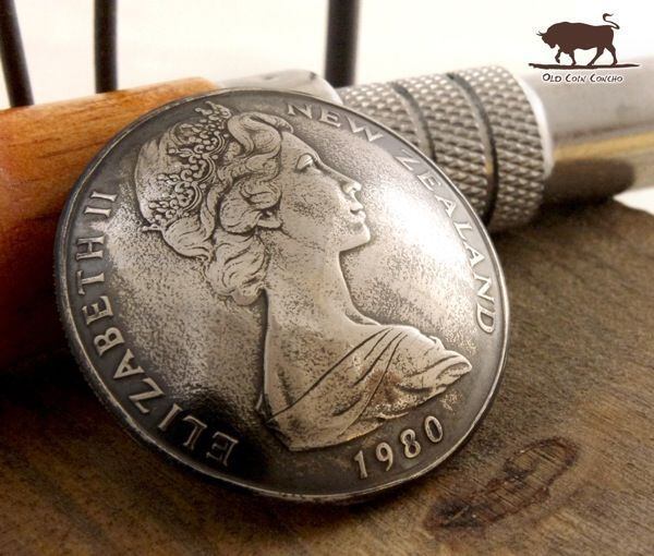 コンチョ ニュージーランド エリザベス 50セント 31mm コインコンチョ ボタン 本物コイン使用