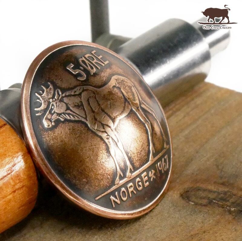 コンチョ ノルウェー 5オーレ ヘラジカ 26mm コインコンチョ ボタン 本物コイン使用
